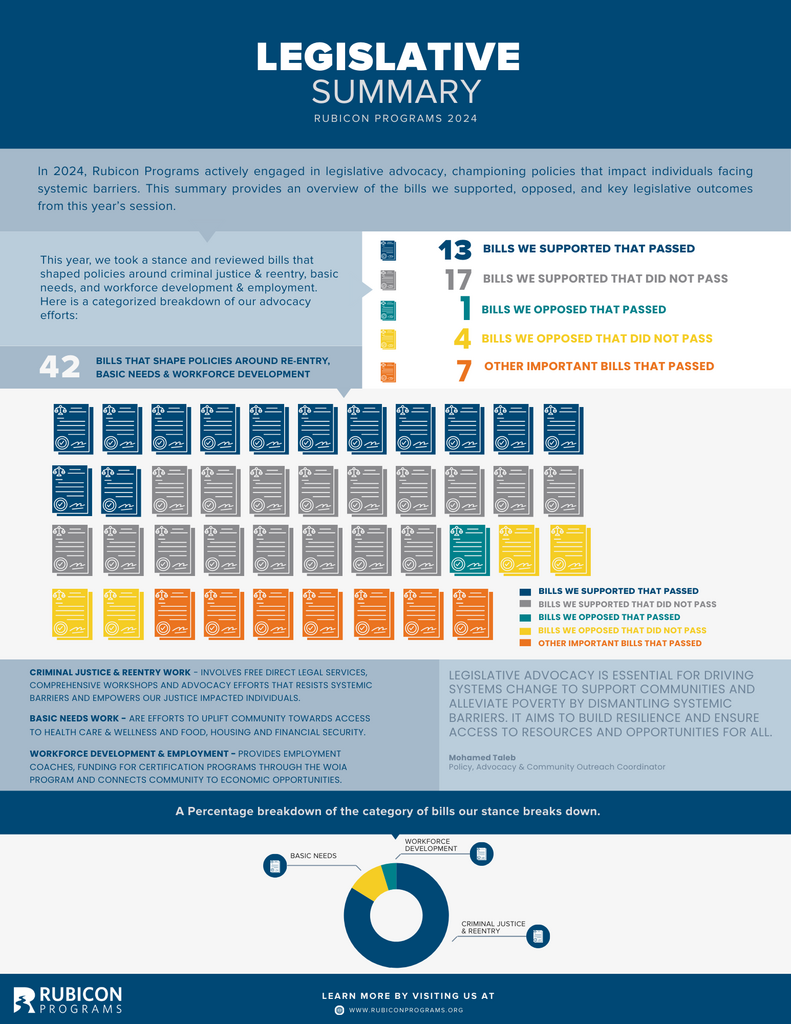 Click here to view a summary of our legislative advocacy work from 2024, prepared by Rubicon Program’s Legal and Advocacy team.